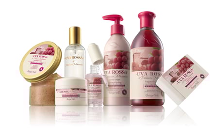 dall'Uva, tra cui spicca l'estratto di Uva Rossa di Palazzo Massaini, che svolge un'attività antiossidante che protegge la pelle da aggressioni dei radicali liberi, dallo stress e dagli agenti